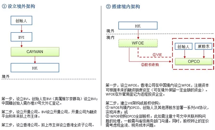 ①創(chuàng)始團隊層層設立BVI公司/開曼公司/WFOE